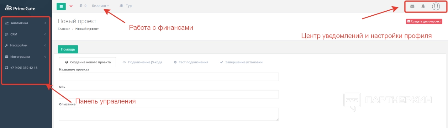 - Настройки. Здесь находятся настройки добавляемых проектов и личного кабинета в целом.