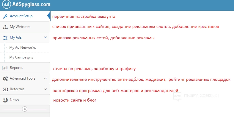 Юзабилити сайта в целом можно отнести к его минусу. Настройка рекламы и подключение площадок проходит в несколько шагов, пользователю приходится постоянно перемещаться между разделами. Также во время тестирования был выявлен небольшой баг: сервис долго не распознает, что предложенный рекламный код уже встроен в сайт. Из-за этого на этапе первой настройки аккаунта невозможно работать с некоторыми инструментами.