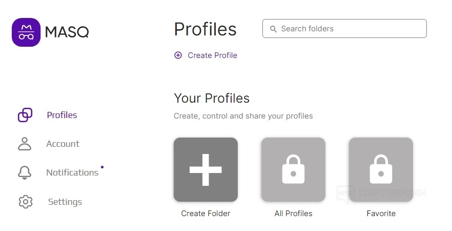 - Профили . В этой вкладке можно создавать профили согласно тарифном плану (после пополнения баланса), а также управлять созданными профилями, организовывать папки, делиться профилями с командой и выполнять другие операции.