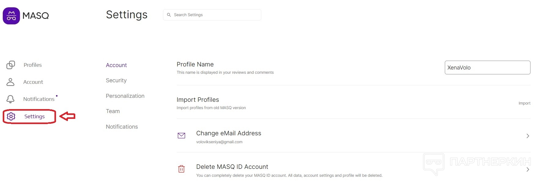 - Настройки . В данном разделе можно управлять своей учетной записью, в том числе настройками безопасности, подключить 2FA, менять пароль, почту, указанную при регистрации. Здесь же можно импортировать профили, менять вид экрана, отображение разделов и вкладок, управлять командными доступами и уведомлениями.