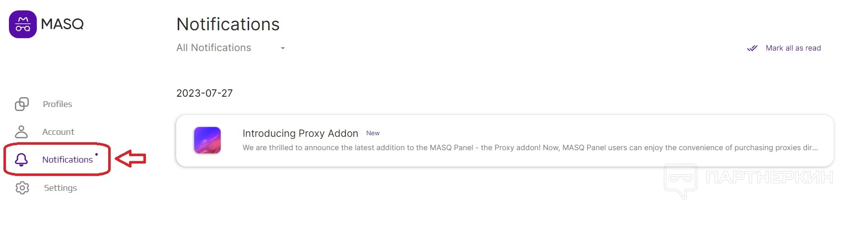- Уведомления . В этой вкладке отображаются актуальные новости и обновления антидетект-браузера.