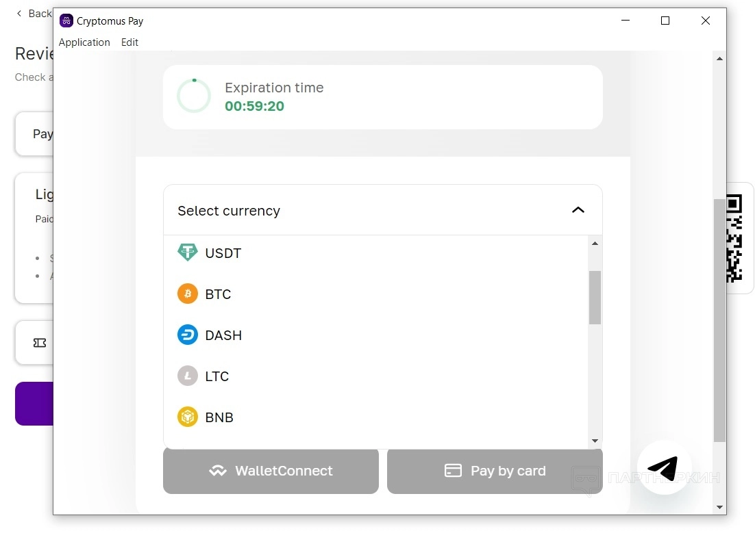 Оплатить тариф можно любым из доступных 55 методов оплаты: банковские карты, PayPal, Google Pay, Apple Pay, AliPay, Union Pay, криптовалюты.