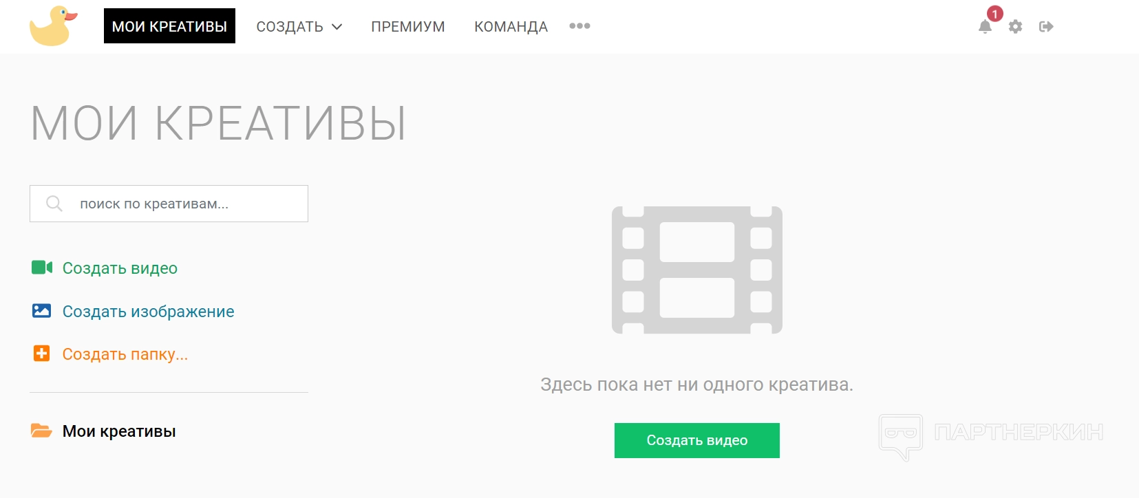 - Нажать на элемент «Создать видео», располагающийся в левой верхней части интерфейса.