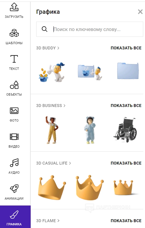 Стоит сказать, что библиотека контента достаточно широкая и включает в себя множество настроек: