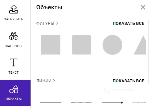 Для добавления фигур внутри проекта необходимо нажать на иконку «Квадрат».