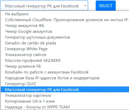 На главной странице пользователю нужно выбрать опцию из выпадающего списка и нажать кнопку «Select»: