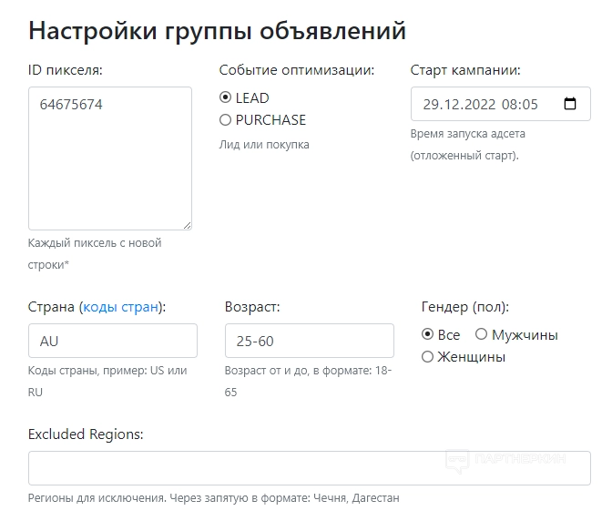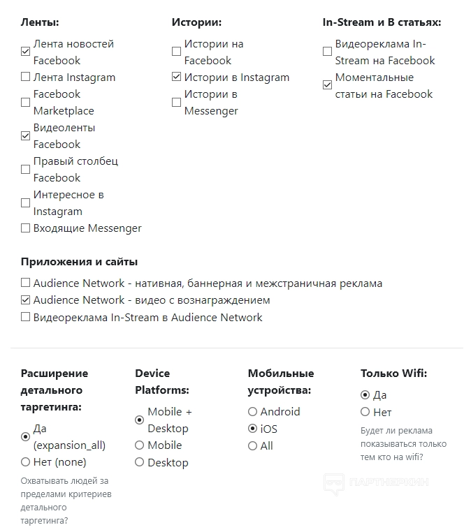 Настройки рекламной кампании: