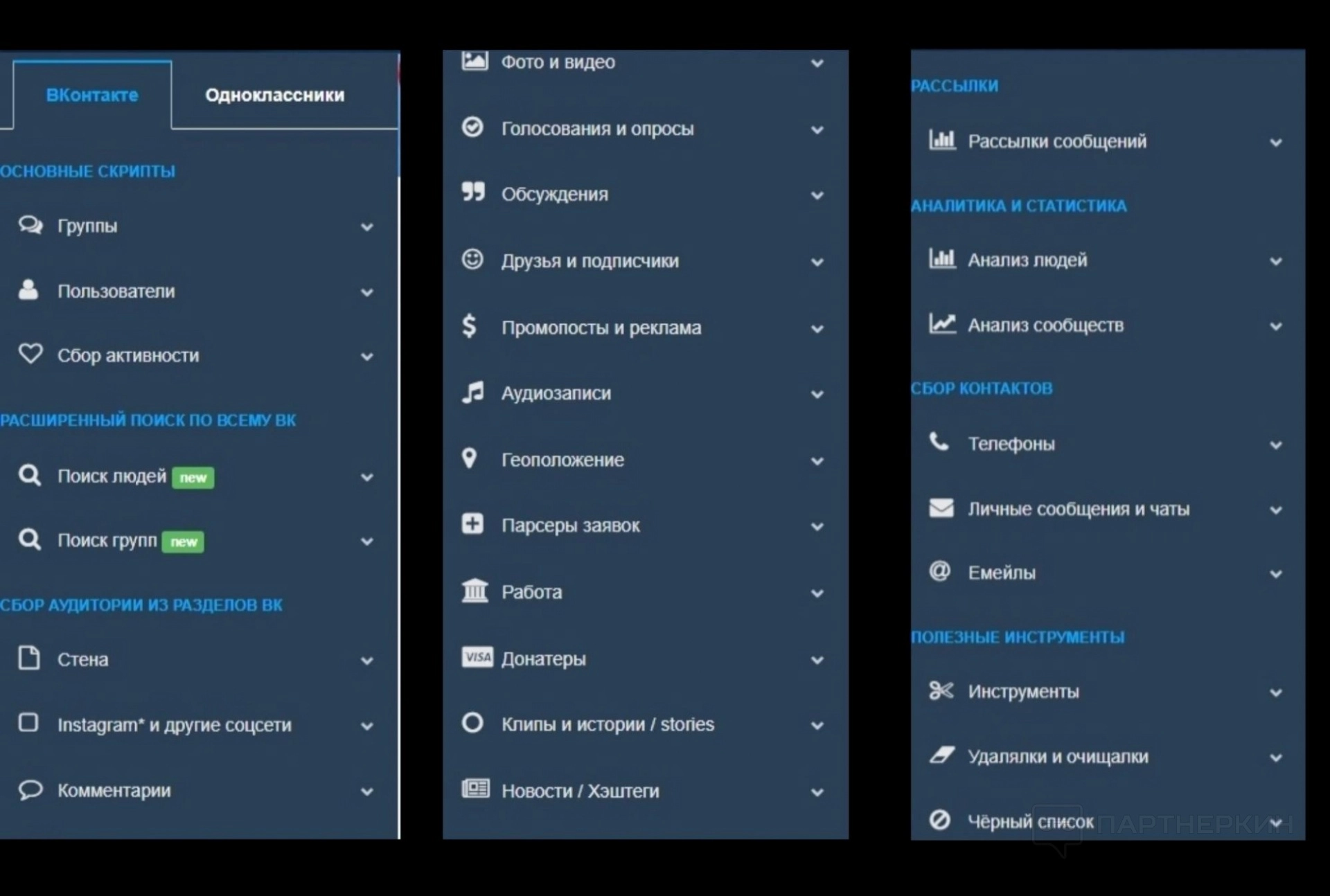 Функционал достаточно огромный, даже сами создатели заявляют, что в сервисе находится уже более 200 парсеров ЦА.