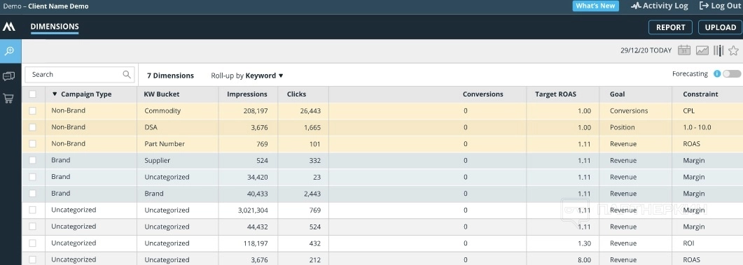 MarinOneбудет распределять уровни расходов по стратегиям ставок, устанавливая цели и бюджеты кампаний.