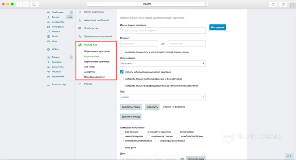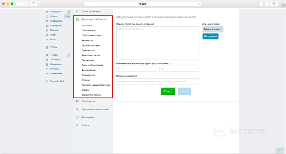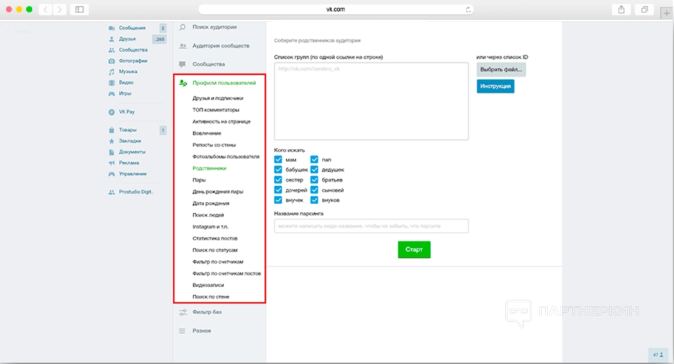 - Друзья и подписчики. Проведение анализа и сбор друзей для конкретной ЦА.