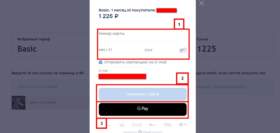 - Введите e-mail (3). Эта опция не обязательна. Она нужна для того, чтобы получить чек на почту.