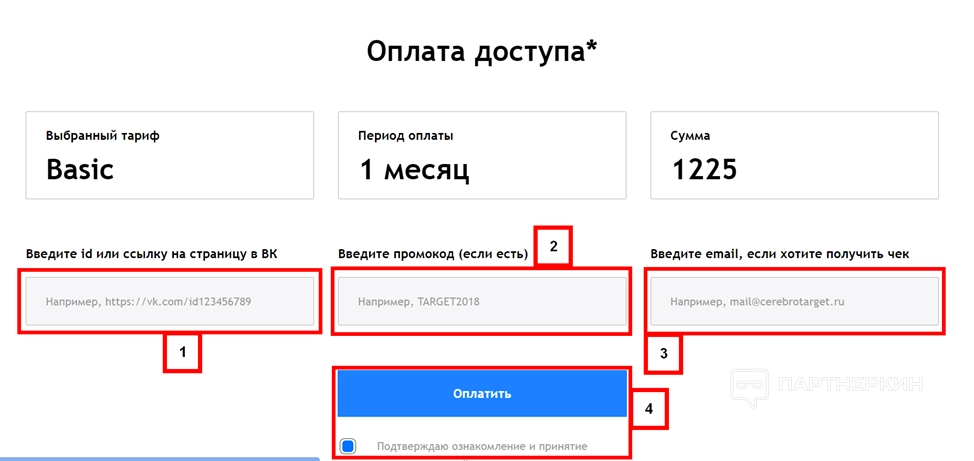 - Нажмите оплатить. Галочка напротив «Подтверждаю ознакомление и принятие» должна быть включена (4).