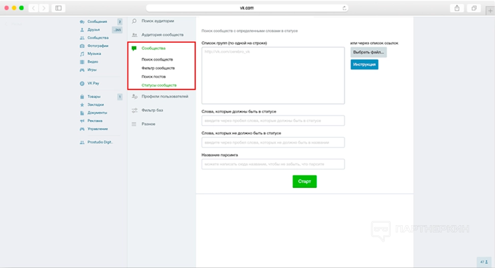 В данном продукте почти весь перечень инструментов направлен на работу с Вконтакте. Однако некоторые опции могут работать с другими социальными сетями. Сервис собирает базу данных по заданным критериям. Это дает возможность делать рассылку определенной группе пользователей.