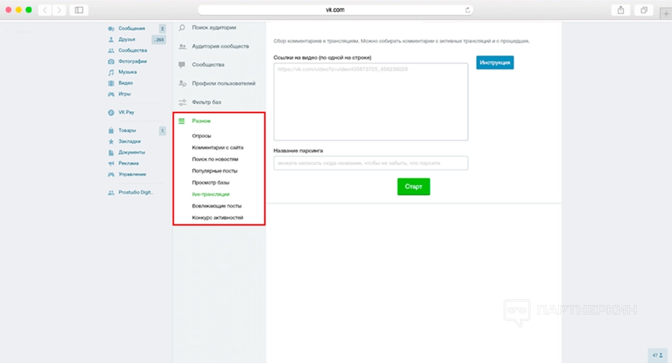 - Комментарии с сайта. Проводит сбор данных в сети пользователей, которые оставили комментарии на самом сайте или в виджетах ВК.