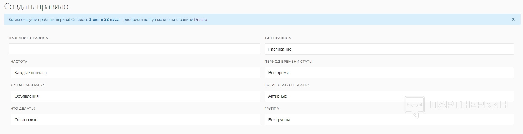 В этом разделе можно установить автоправила. Настройки выглядят так: