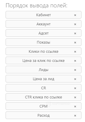 Пользователь может настроить статистику под себя — добавить нужные поля, убрать ненужные, расположить их в удобном для себя порядке. Возможный вариант порядка вывода полей:
