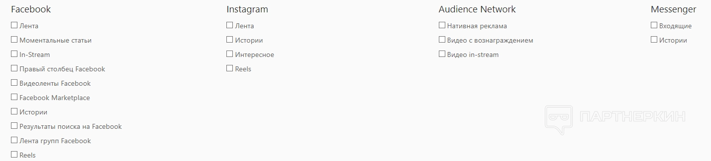 В этом разделе пользователь настраивает и управляет рекламными объявлениями (сначала нужно выбрать аккаунт Facebook*).