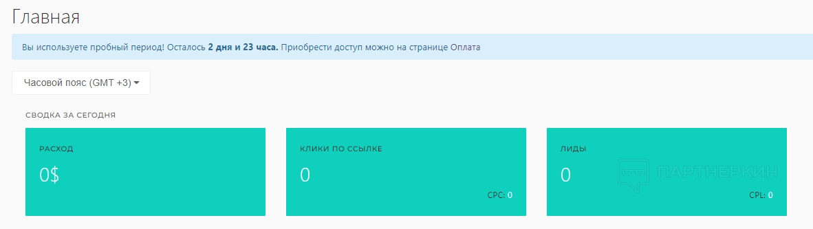 Новости и информация по аккаунту. В этом разделе специалист может изменить часовой пояс, посмотреть расходы, клики по ссылке и лиды.