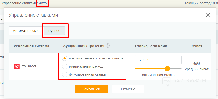 Если же вам хочется управлять ставками самостоятельно, переключитесь в ручной режим. Здесь вам нужно будет выбрать одну из трех стратегий: максимум трафика, минимальный расход средств или фиксированная ставка. Изменяя размер ставки, вы увидите, как изменится предполагаемый охват.