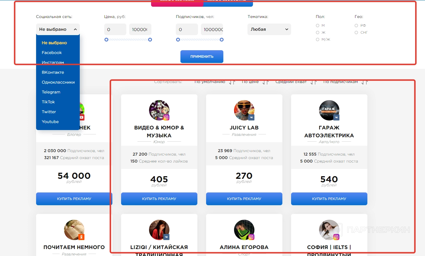 - биржа рекламы — здесь можно найти рекламные интеграции для продвижения своего бренда, товара или услуги;