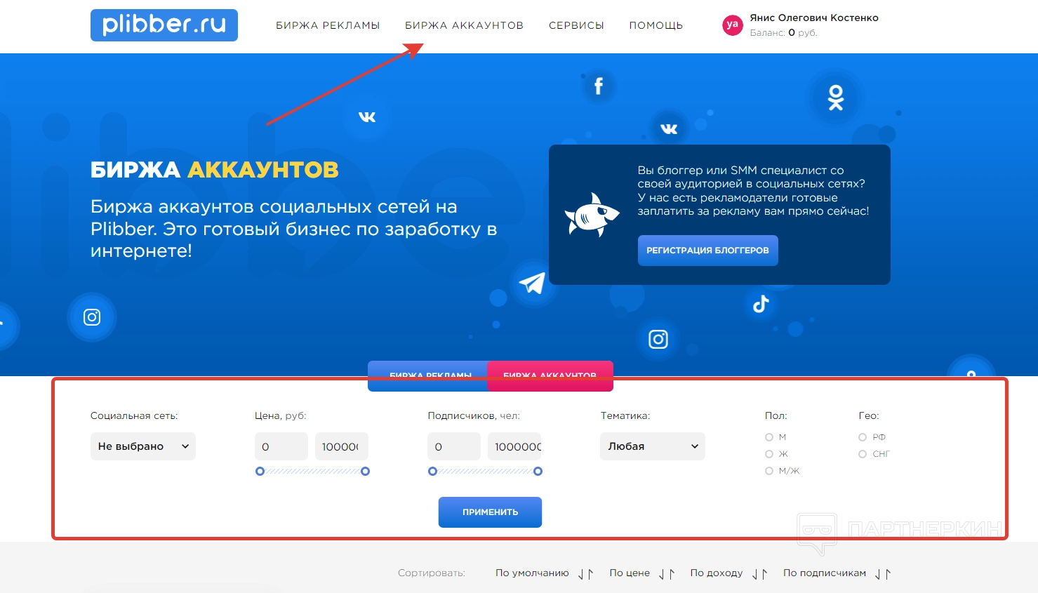 - биржа аккаунтов — каталог с продающимися страницами, пабликами и профилями в социальных сетях;