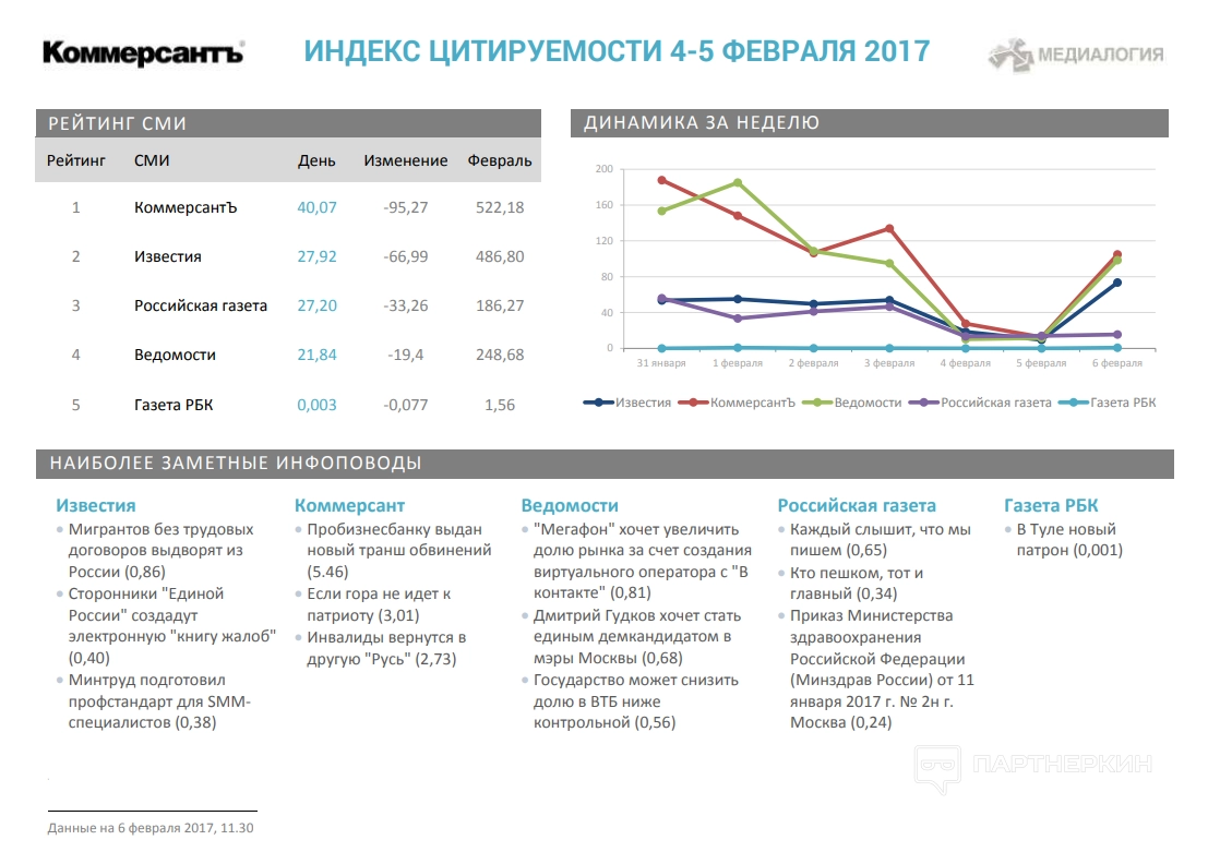 Пример индекса цитируемости издания «Коммерсантъ» за 4-5 февраля 2017 года: