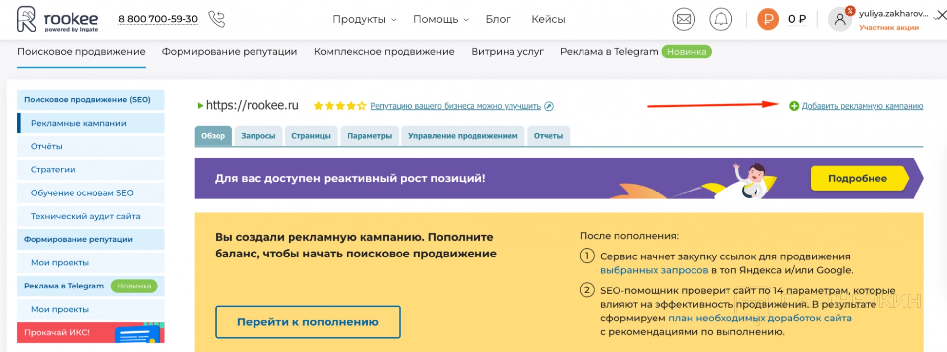 В личном кабинете надо кликнуть на «Добавить рекламную кампанию»: