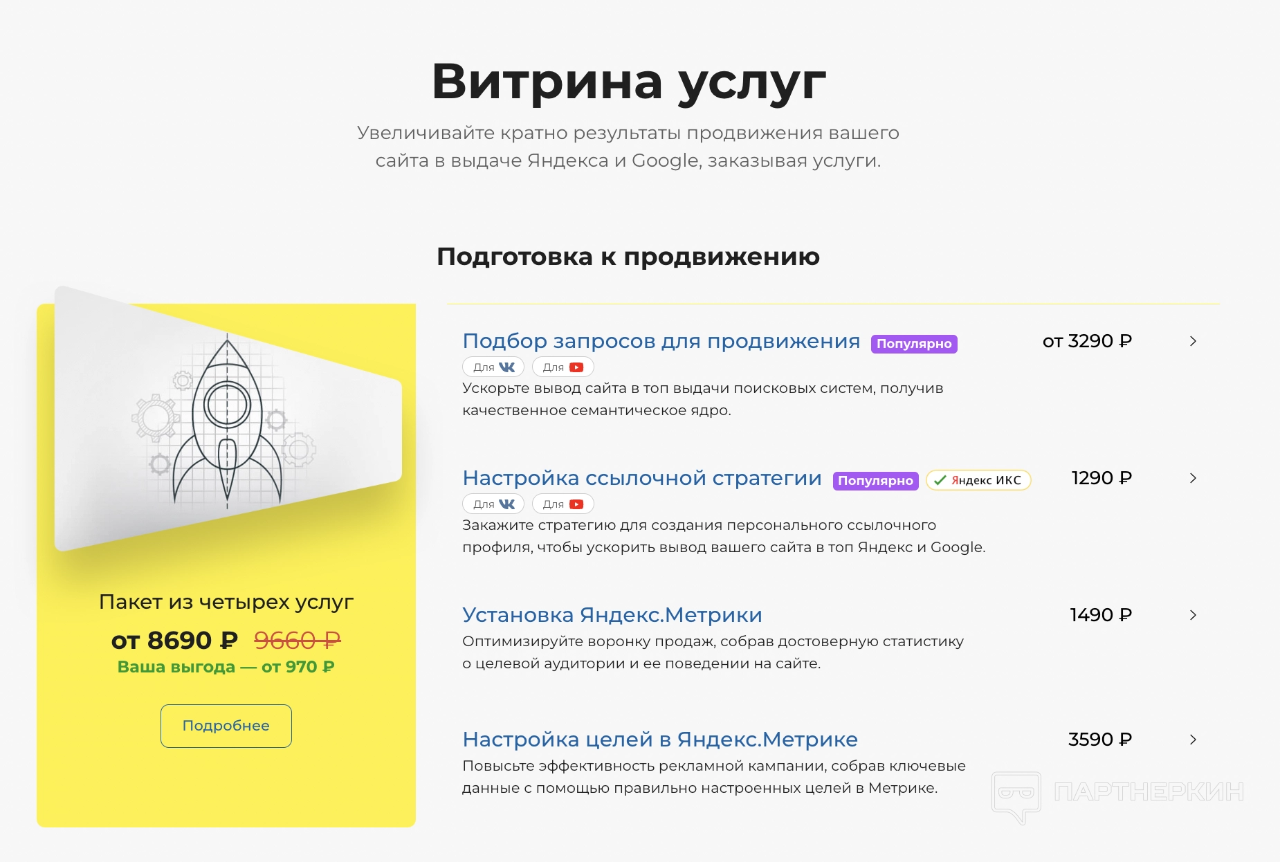 Этот раздел создан для тех, кто самостоятельно занимается продвижением, но в некоторых моментах нужна помощь. Каталог услуг очень большой, вот лишь несколько вариантов: