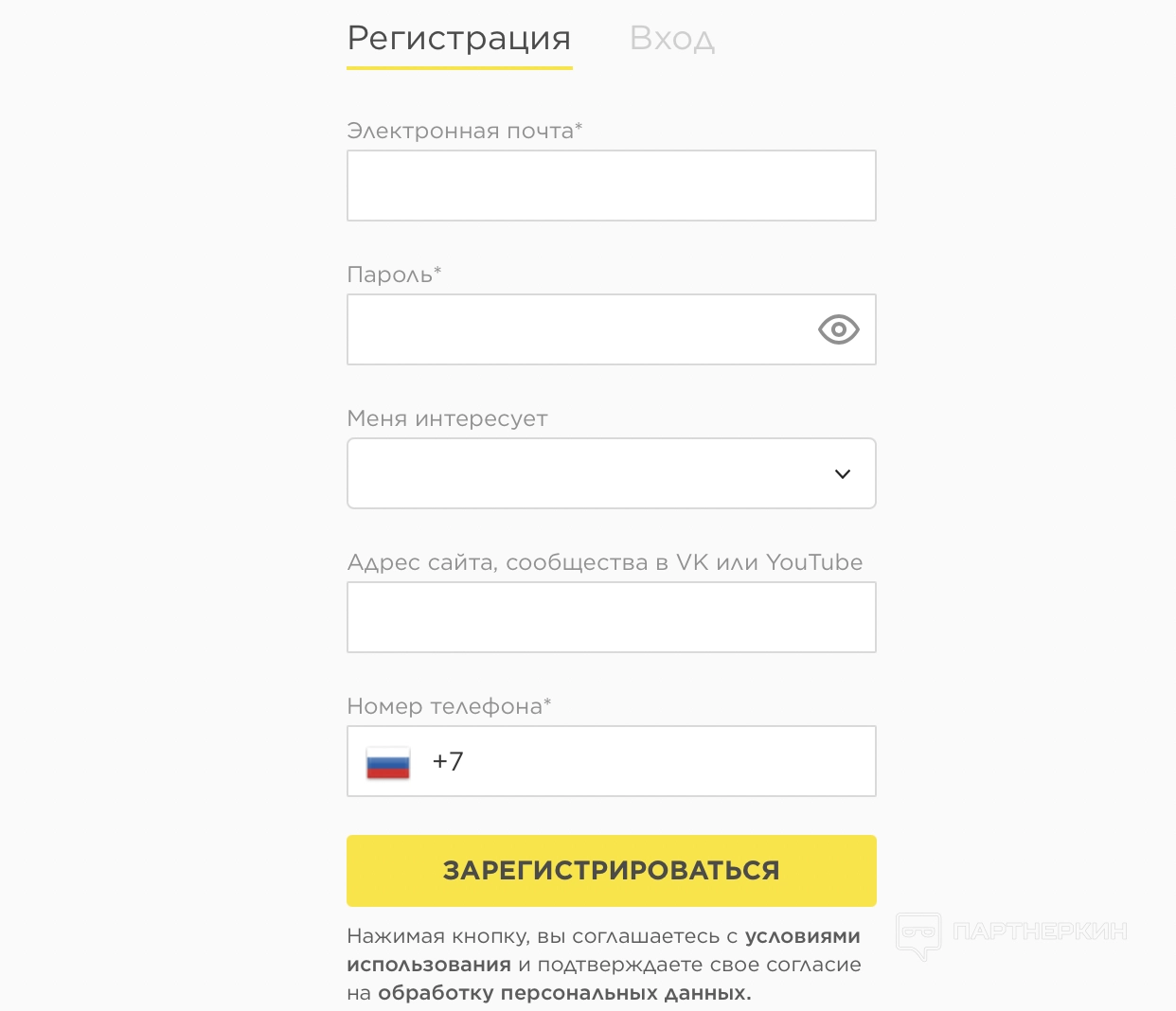 Чтобы зарегистрироваться, нужно заполнить всего несколько полей:
