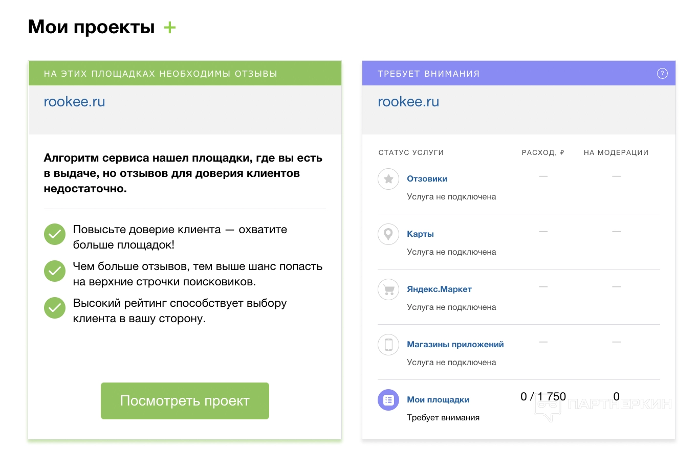Речь о заполнении площадок позитивными отзывами о продукте заказчика. После заполнения брифа и выбора количества отзывов в месяц сервис заведет карточку на нужной площадке (если ее там еще нет) и начнет наполнение отзывами.