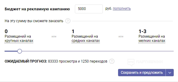Так как у платформы есть встроенный калькулятор, то после указания всех данных система подсчитает примерные просмотры и переходы.