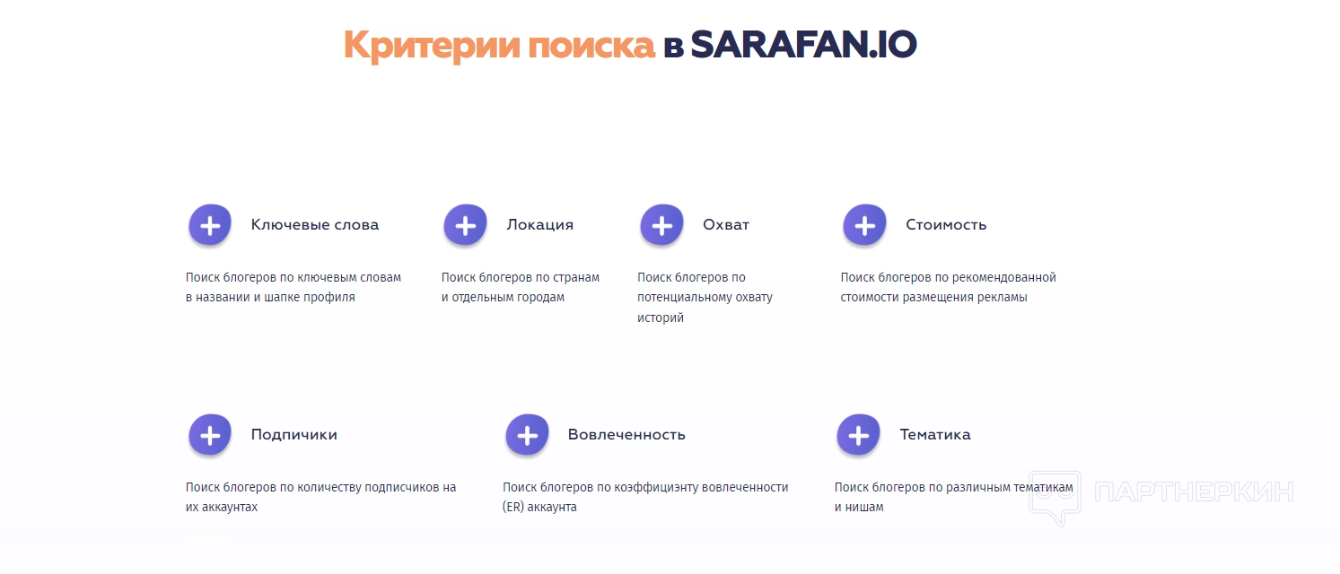 Sarafanпозволяет осуществлять точный поиск блогеров по различным критериям, включая тематику, аудиторию, географическое расположение и другие параметры. Это позволяет найти блогеров, наиболее подходящих для конкретной рекламной или маркетинговой кампании.