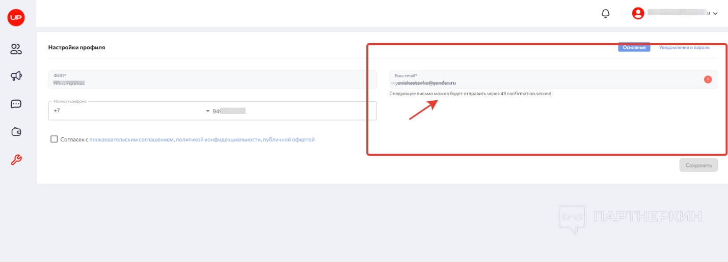Сразу после регистрации пользователя перебросит в раздел настроек, где нужно будет завершить процесс регистрации. В правой части экрана можно найти информацию о том, что на указанную почту было отправлено письмо для активации аккаунта.