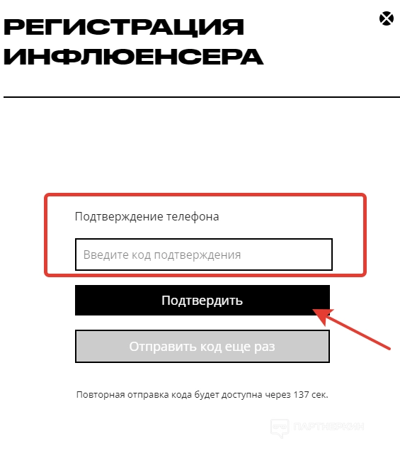 Далее появится окно, куда нужно будет ввести 4-значный код, отправленный на указанный номер телефона.