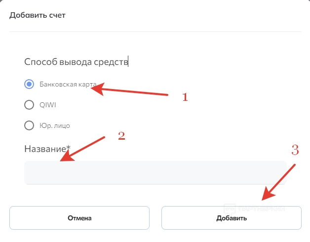 - Выбираем подходящий способ оплаты, вводим реквизиты и кликаем «Добавить».
