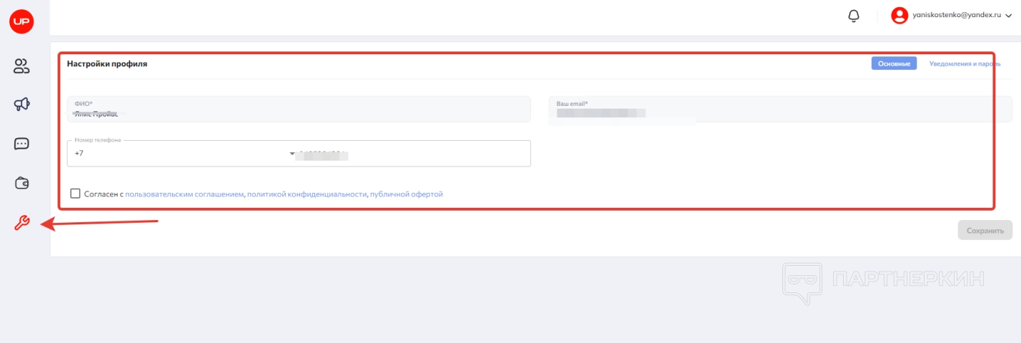 - партнерская программа — тут есть реферальная ссылка и условия партнерской программы;