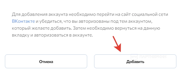 Далее нужно выбрать социальную сеть и кликнуть «Добавить». Система сразу же предложит авторизоваться под выбранным аккаунтом, после чего подгрузит его в панель управления.
