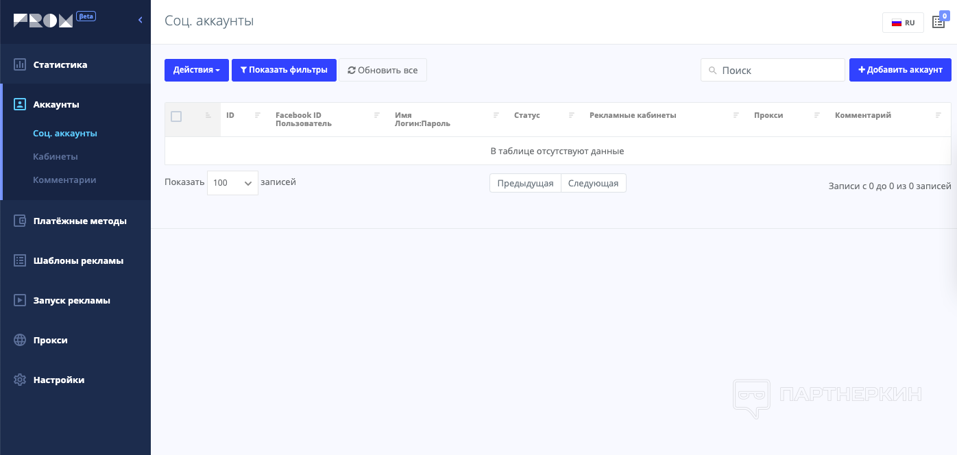 Все возможности рекламных кабинетов в пределах одной вкладки браузера.