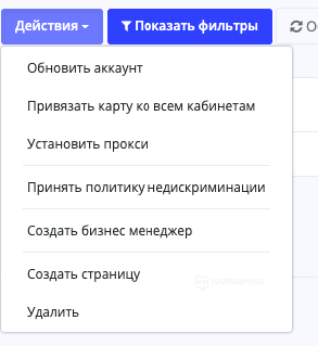 На уровне соц аккаунта мы сразу можем выполнить несколько базовых действий. Например, привязать карту к кабинетам акка, принять политику недискриминации, создать БМ, ФП etc:
