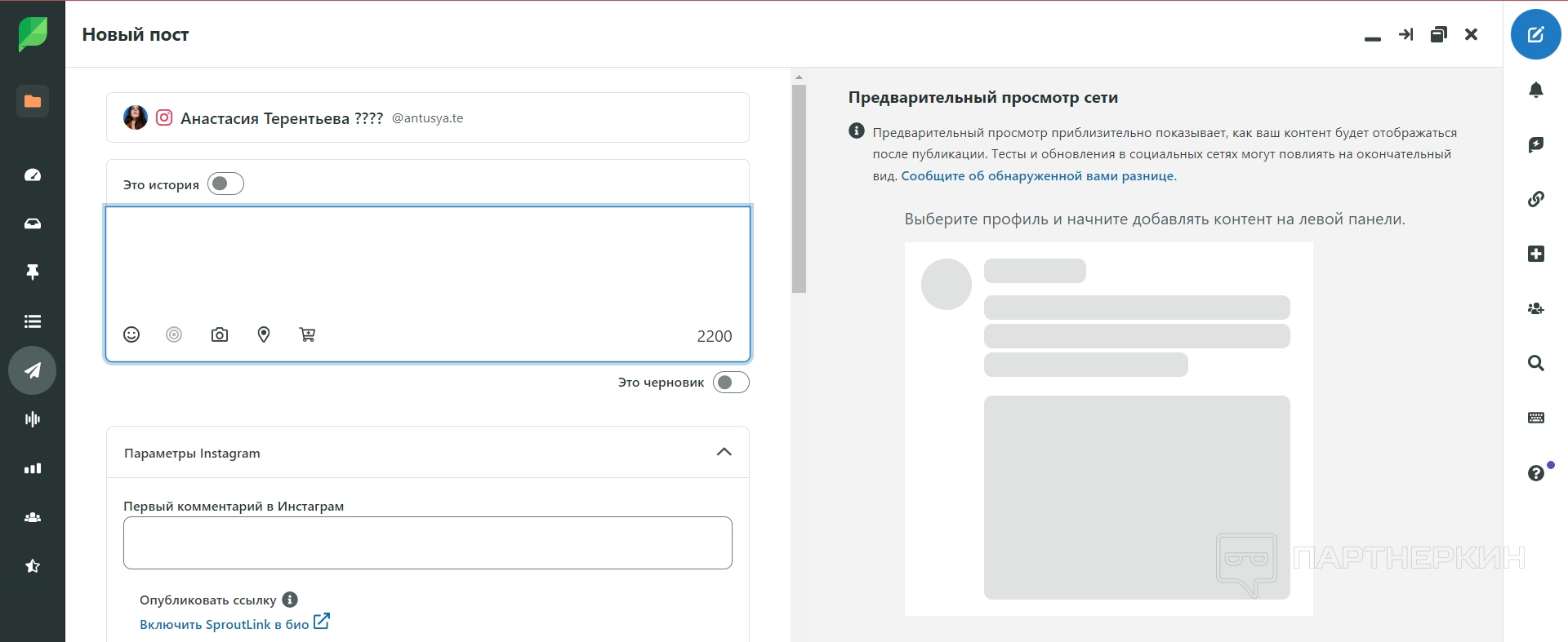 Паблишер — в этом разделе удобно настраивать публикацию постов или роликов в определенных соцсетях.
