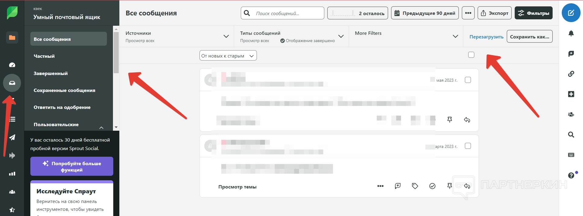 Умный почтовый ящик — это следующий раздел, который отображает все комментарии пользователя. Удобно, что есть пункты, на которые они подразделяются — например, все комментарии или только сохраненные. При этом, есть удобный фильтр вверху для сегментирования комментариев.