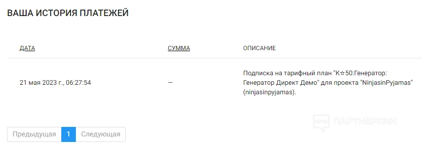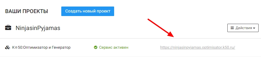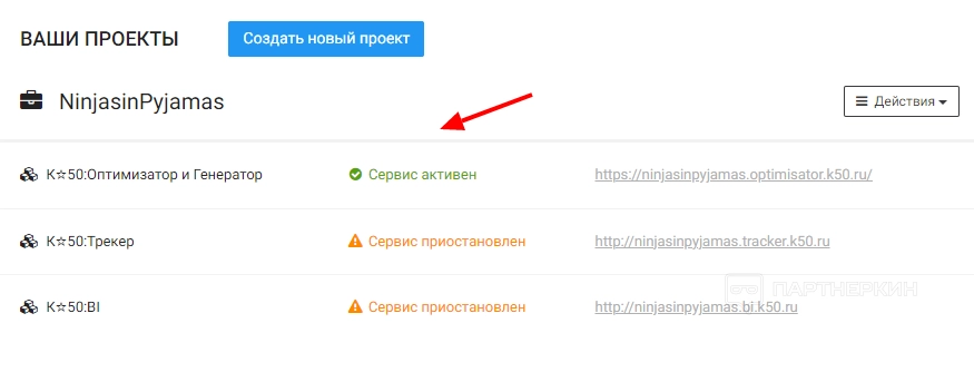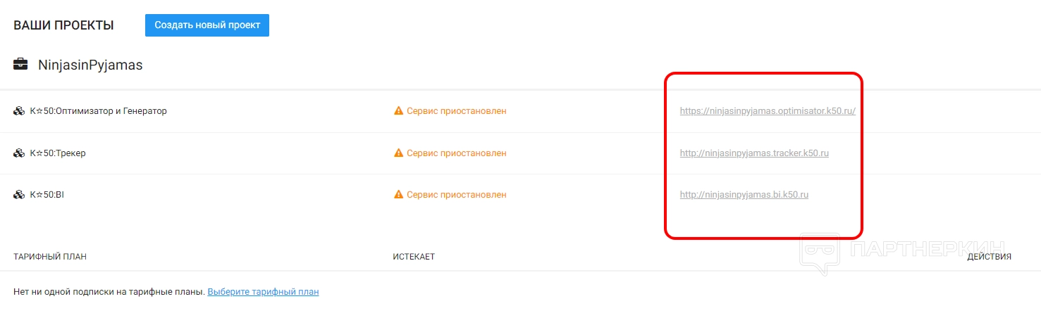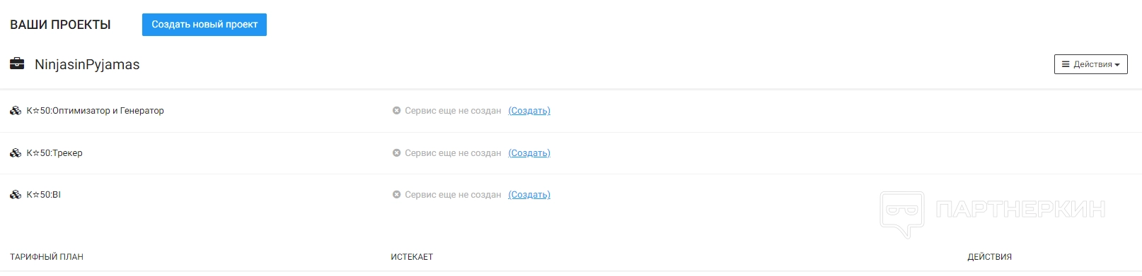 Проект создан. Теперь у пользователя есть доступ к управлению. По умолчанию к нему не подключен ни один из инструментов и тарифов.