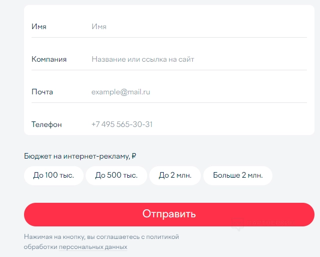 • бюджет на интернет-рекламу (от 100 тысяч до 2 миллионов и более).