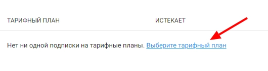 В личном кабинете пользователю необходимо нажать на пункт «Выберите тарифный план».