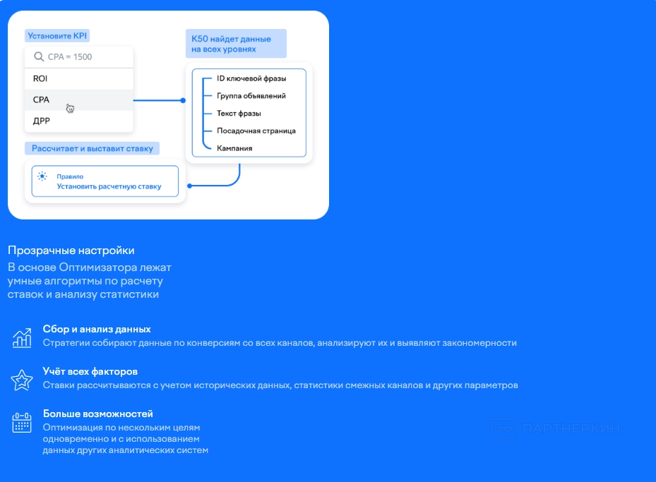 С помощью этого сервиса пользователи платформы K50 смогут автоматически оптимизировать рекламные системы. Для работы с этим инструментом нужно перейти по ссылке.
