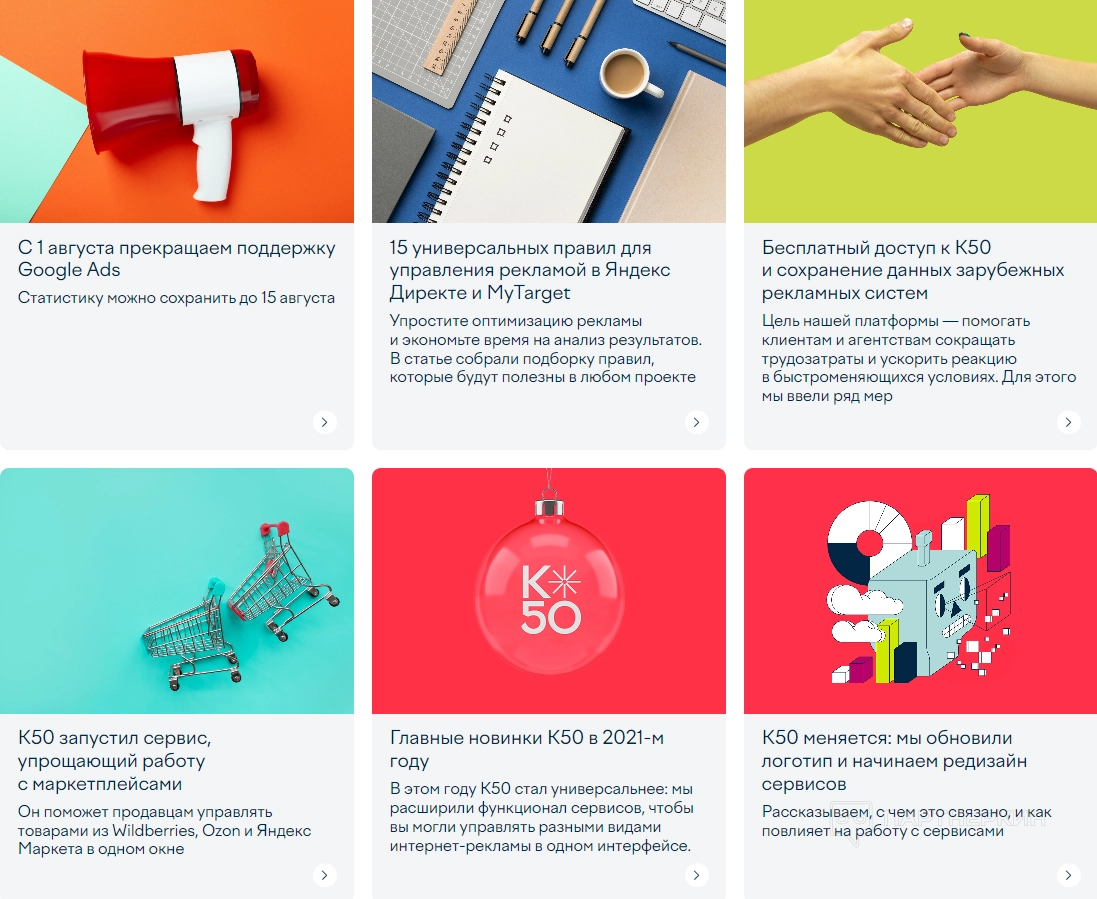 3. Маркетинговая поддержка. Компания K50 вместе с клиентом будут развивать рынок интернет-рекламы, организовывать мероприятия, публиковать совместные кейсы и статьи.