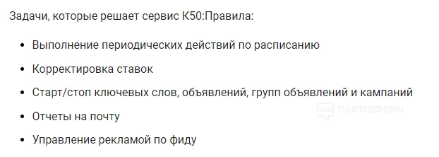 Оптимизатор K50 упрощает работу с контекстной и таргетированной рекламой. Раздел предназначен для новичков, которые могут ознакомиться с полезной информацией и узнают следующее: