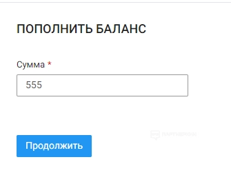 Для пополнения баланса клиенту необходимо ввести сумму и нажать кнопку «Продолжить».