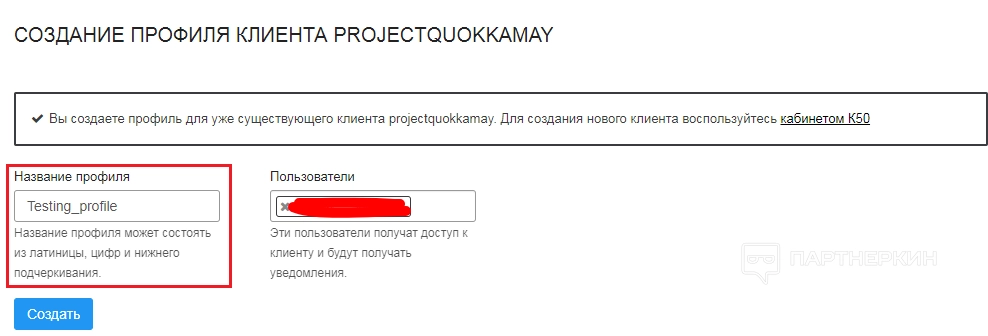 Далее — нажать кнопку «Создать новый профиль» и указать его название.