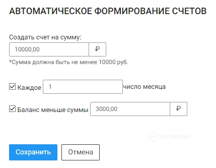 Клиент площадки K50 может создать счет на сумму не менее 10 000 рублей.